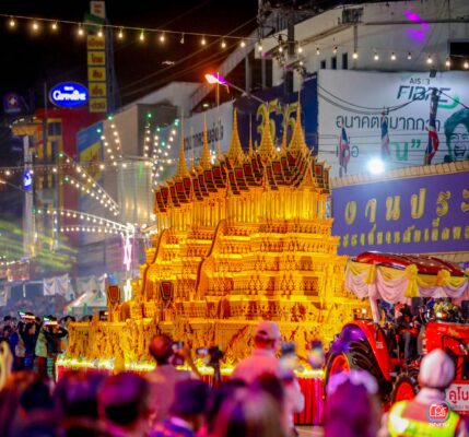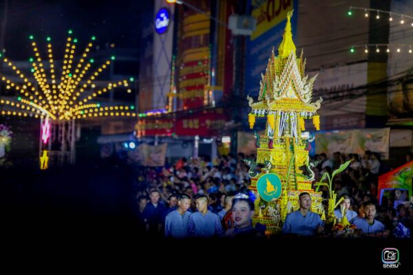 มหาวิทยาลัยราชภัฏสกลนคร ร่วมกิจกรรมในงานประเพณีแห่ปราสาทผึ้งและแข่งขันเรือยาวชิงถ้วยพระราชทานฯ จังหวัดสกลนคร ประจำปี 2568 ในระหว่างวันที่ 1 – 7 ตุลาคม 2568 โดยในวันที่ 2 ตุลาคม 2568 เป็นพิธีเปิดงานแห่ปราสาทผึ้ง ประจำปี 2568 ณ บริเวณลาน ร.5 โดย ผศ.ชาคริต ชาญชิตปรีชา อธิการบดีมหาวิทยาลัยราชภัฏสกลนคร พร้อมบุคลากร เข้าร่วมงาน พร้อมรับชมการแสดงละครเวทีร่วมสมัย ประกอบแสง สี เสียง “ยลยินอารยพุทธธรรม งามล้ำปราสาทผึ้ง” จัดแสดงโดยสถาบันภาษา ศิลปะและวัฒนธรรม มหาวิทยาลัยราชภัฏสกลนคร ร่วมกับสาขาวิชาการแสดง คณะศิลปกรรมศาสตร์ มหาวิทยาลัยขอนแก่น และคณะนักแสดงจากโรงเรียนในเครือข่าย พร้อมกันนี้ คณะอาจารย์และนักศึกษา สาขาวิชาคหกรรมศาสตร์ ยังได้ร่วมจัดทำปราสาทผึ้งสร้างสรรค์เพื่อร่วมขบวนแห่ปราสาทผึ้งในวันที่ 6 ตุลาคม 2568 และมหาวิทยาลัยราชภัฏสกลนครได้ร่วมจัดขบวน “ศิรินครา ปราสาทผึ้งสกลนคร” ซึ่งเป็นขบวนนำ ในขบวนแห่ประสาทผึ้ง ประจำปี 2568
