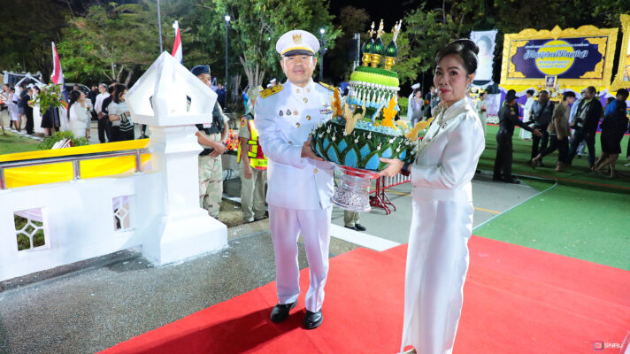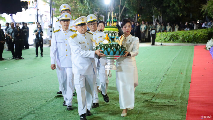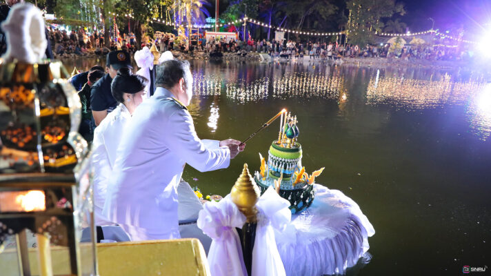 ในการนี้ ศ.ดร.ทศวรรษ สีตะวัน รองอธิการบดีมหาวิทยาลัยราชภัฏสกลนคร พร้อมด้วย นางอุไร สีตะวัน คู่สมรส เข้ารับพระประทีปพระราชทาน ของพระเจ้าวรวงศ์เธอ พระองค์เจ้าสิริภาจุฑาภรณ์ เพื่อเชิญขึ้นประดิษฐานในรถขบวนแห่ โดยขบวนเริ่มจากลานพระบรมราชานุสาวรีย์ รัชกาลที่ 5 และสิ้นสุดที่สวนสมเด็จพระศรีนครินทร์ (สระพังทอง) จากนั้นเชิญพระประทีปลงลอยร่วมกับหัวหน้าส่วนราชการ ที่ได้เชิญพระประทีปของสมเด็จพระเจ้าอยูู่หัว สมเด็จพระนางเจ้าฯ พระบรมราชินี และพระบรมวงศานุวงศ์ ลงลอยร่วมกับประชาชนชาวจังหวัดสกลนคร