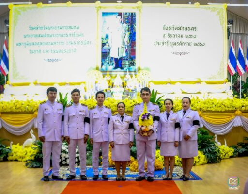 วันที่ 5 ธันวาคม 2568 มหาวิทยาลัยราชภัฏสกลนคร ร่วมพิธีถวายราชสักการะ พระบาทสมเด็จพระบรมชนกาธิเบศร มหาภูมิพลอดุลยเดชมหาราช บรมนาถบพิตร เนื่องในวันคล้ายวันพระบรมราชสมภพ วันชาติ และวันพ่อแห่งชาติ ประจำปี 2568 จังหวัดสกลนคร โดย ผศ.ดร.สมบูรณ์ ชาวชายโขง รองอธิการบดี พร้อมด้วย อาจารย์กรกช มาตะรัตน์ ผู้อำนวยการสำนักวิทยบริการและเทคโนโลยีสารสนเทศ และบุคลากร ร่วมพิธีเจริญพระพุทธมนต์และพิธีทำบุญตักบาตร พิธีวางพานพุ่มดอกไม้ถวายราชสักการะ ณ หอประชุมจามจุรี 1 มหาวิทยาลัยราชภัฏสกลนคร โดยมี นางรณิดา เหลืองฐิติสกุล ผู้ว่าราชการจังหวัดสกลนคร ประธานในพิธี และกล่าวน้อมรำลึกในพระมหากรุณาธิคุณ พร้อมด้วย ข้าราชการ ศาล ทหาร ตำรวจ หัวหน้าส่วนราชการ ภาครัฐและภาคเอกชน ร่วมพิธี เพื่อแสดงออกถึงความจงรักภักดี และสำนึกในพระมหากรุณาธิคุณอันหาที่สุดมิได้