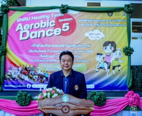 วันที่ 2 กุมภาพันธ์ 2569 งานอนามัยและสุขาภิบาล มหาวิทยาลัยราชภัฏสกลนคร จัดพิธีเปิดกิจกรรม SNRU Healthy Team (Aerobic Dance) Season 5 และกิจกรรม Calories Credit Challenge ภายใต้โครงการ SNRU Happy body โดยมี อาจารย์ ดร.พรเทพ เสถียรนพเก้า รองอธิการบดี กล่าวเปิดงาน ณ บริเวณลานหน้าอาคาร 20 มหาวิทยาลัยราชภัฏสกลนคร และนางพรทิพย์ ไชยพะยวน นักอาชีวอนามัยและความปลอดภัย โรงพยาบาลค่ายกฤษณ์สีวะรา เป็นวิทยากรให้ความรู้ กิจกรรมดังกล่าว จัดขึ้นเพื่อส่งเสริมสุขภาพให้กับนักศึกษาและบุคลากรในมหาวิทยาลัย ใช้เวลาว่างให้เกิดประโยชน์ด้วยการออกกำลังกาย
