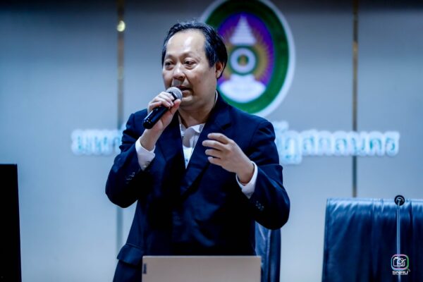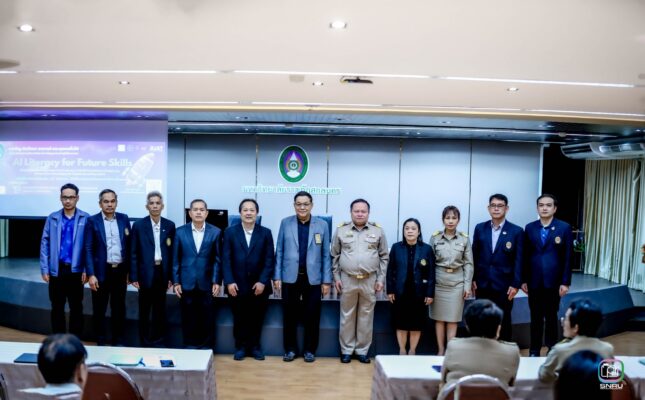 วันที่ 2 มีนาคม 2569 สำนักวิทยบริการและเทคโนโลยีสารสนเทศ มหาวิทยาลัยราชภัฏสกลนคร จัดการบรรยายพิเศษในหัวข้อ “พลิกโฉมการศึกษาในยุค AI : สถานการณ์ปัจจุบัน โอกาส และความท้าทายแห่งอนาคต” ภายใต้โครงการ “พัฒนาทักษะด้านปัญญาประดิษฐ์เพื่ออนาคต (AI Literacy for Future Skills) ” ณ ห้องประชุมสร้อยสุวรรณา ชั้น 3 อาคาร 10 มหาวิทยาลัยราชภัฏสกลนคร โดย ผศ.ชาคริต ชาญชิตปรีชา อธิการบดี กล่าวเปิดงาน และ อาจารย์ กรกช มาตะรัตน์ ผู้อำนวยการสำนักวิทยบริการและเทคโนโลยีสารสนเทศ กล่าวรายงาน ในโอกาสนี้ อธิการบดี พร้อมด้วย ดร.เทพชัย ทรัพย์นิธิ นายกสมาคมปัญญาประดิษฐ์ประเทศไทย และวิทยากรผู้ทรงคุณวุฒิ ได้มอบเกียรติบัตรให้กับผู้ที่ผ่านการอบรมในโครงการดังกล่าว โดยแบ่งออกเป็น 3 หลักสูตร ได้แก่ หลักสูตร Master Trainer หรือ วิทยากร จำนวน 20 คน, ครูผู้สอน จำนวน 51 คน และหลักสูตรเยาวชน จำนวน 8 คน จากนั้นจึงเป็นการบรรยายพิเศษ ซึ่งมีผู้สนใจเข้าร่วมกว่า 80 คน