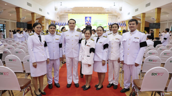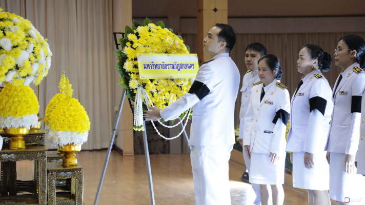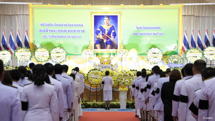 วันที่ 25 เมษายน 2569 มหาวิทยาลัยราชภัฏสกลนคร โดย ผศ.ดร.ประวิทย์ สุวรรณรงค์ คณบดีคณะวิทยาศาสตร์และเทคโนโลยี พร้อมด้วยผู้บริหารและบุคลากร ร่วมงานรัฐพิธี “วันคล้ายวันสวรรคต สมเด็จพระนเรศวรมหาราช ประจำปี 2569” โดยมี นางรณิดา เหลืองฐิติสกุล ผู้ว่าราชการจังหวัดสกลนคร เป็นประธานในพิธีวางพวงมาลา และกล่าวถวายราชสุดีเบื้องหน้าพระบรมสาทิสลักษณ์สมเด็จพระนเรศวรมหาราช พร้อมด้วยหัวหน้าส่วนราชการ ข้าราชการ ศาล ทหาร ตำรวจ หน่วยงานภาครัฐ เข้าร่วมพิธี ณ หอประชุมจามจุรี 1 มหาวิทยาลัยราชภัฏสกลนคร