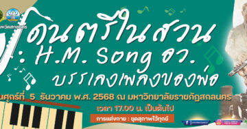 “ดนตรีในสวน : H.M. Song อว. บรรเลงเพลงของพ่อ” (หน่วยปฏิบัติการ กระทรวงการอุดมศึกษา วิทยาศาสตร์ วิจัยและนวัตกรรม ส่วนหน้า จังหวัดสกลนคร) วันศุกร์ที่ ๕ ธันวาคม พ.ศ. ๒๕๖๘ ณ มหาวิทยาลัยราชภัฏสกลนคร 20 พฤศจิกายน 25684 ธันวาคม 2025 ข่าวหน้าเเรก งานประชาสัมพันธ์และโสตทัศนูปกรณ์20 พฤศจิกายน 2568